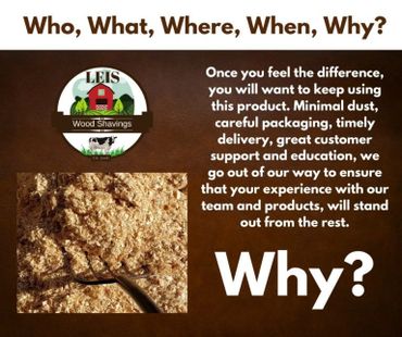 Our selection of products are not only the highest quality but we ensure that each and every package is exactly what you ordered. We care about your business, your farm and your animals and we offer only the best; what we would use and have used. The Leis Wood Shavings team is ready to provide support and advice to help you with any questions or special requests, and to make the right decisions for your product purchases.